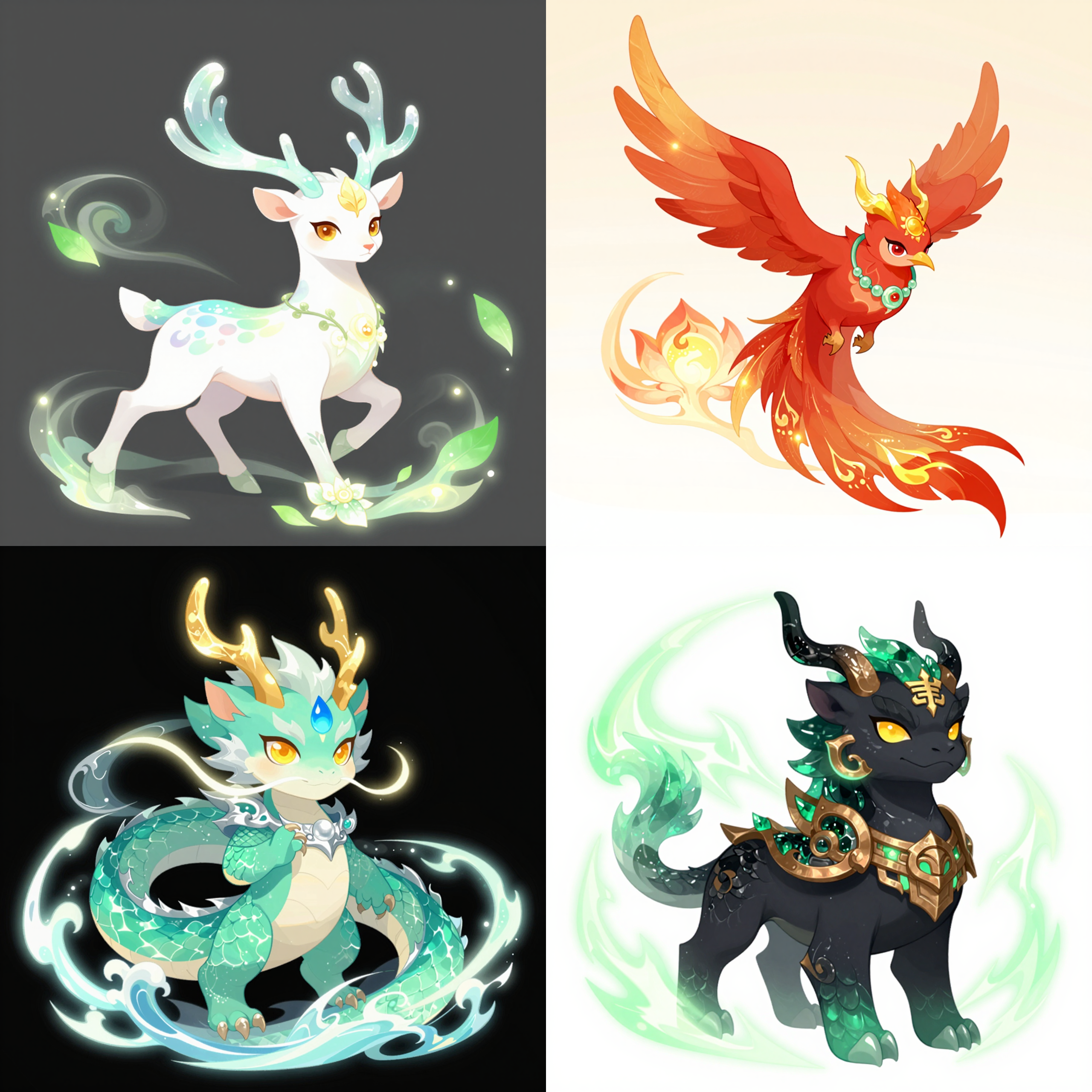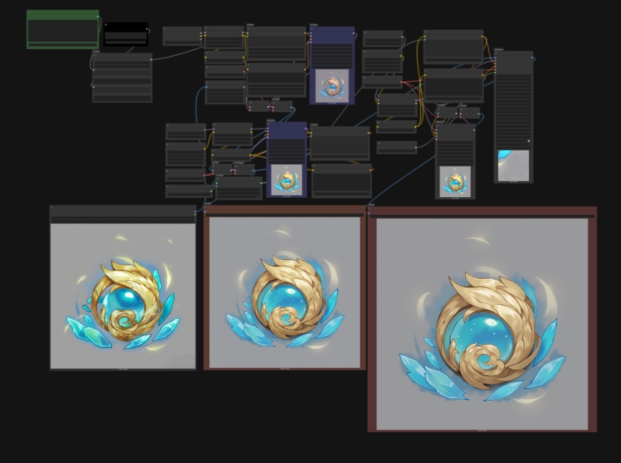 展示训练的其中一部分模型文生图效果,包含古宝,背景特效,icon,半身像,活动背景界面,立绘。